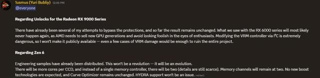 言归正传,简单来说,这位网友“求锤得锤”,Zen 6架构处理器桌面版系列的最高运行频率是有可能达到7GHz的, 但只限于某些高端型号。